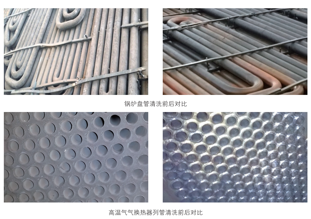 1、除去锅炉表面附着金属氧化层,恢复锅炉盘管的换热效率,提高蒸汽产量。